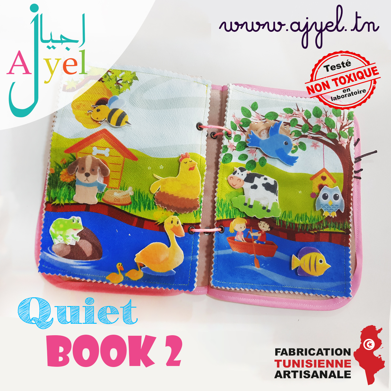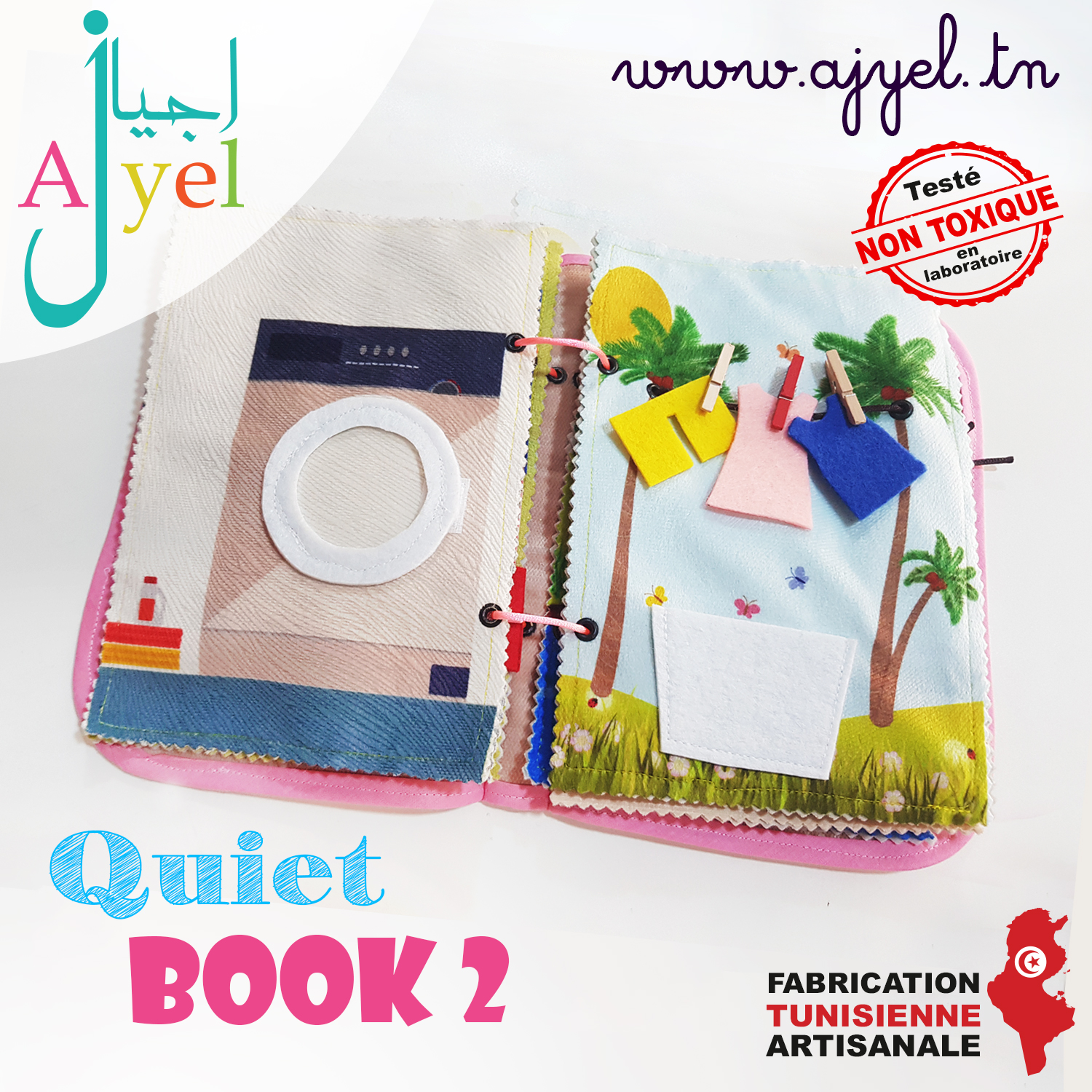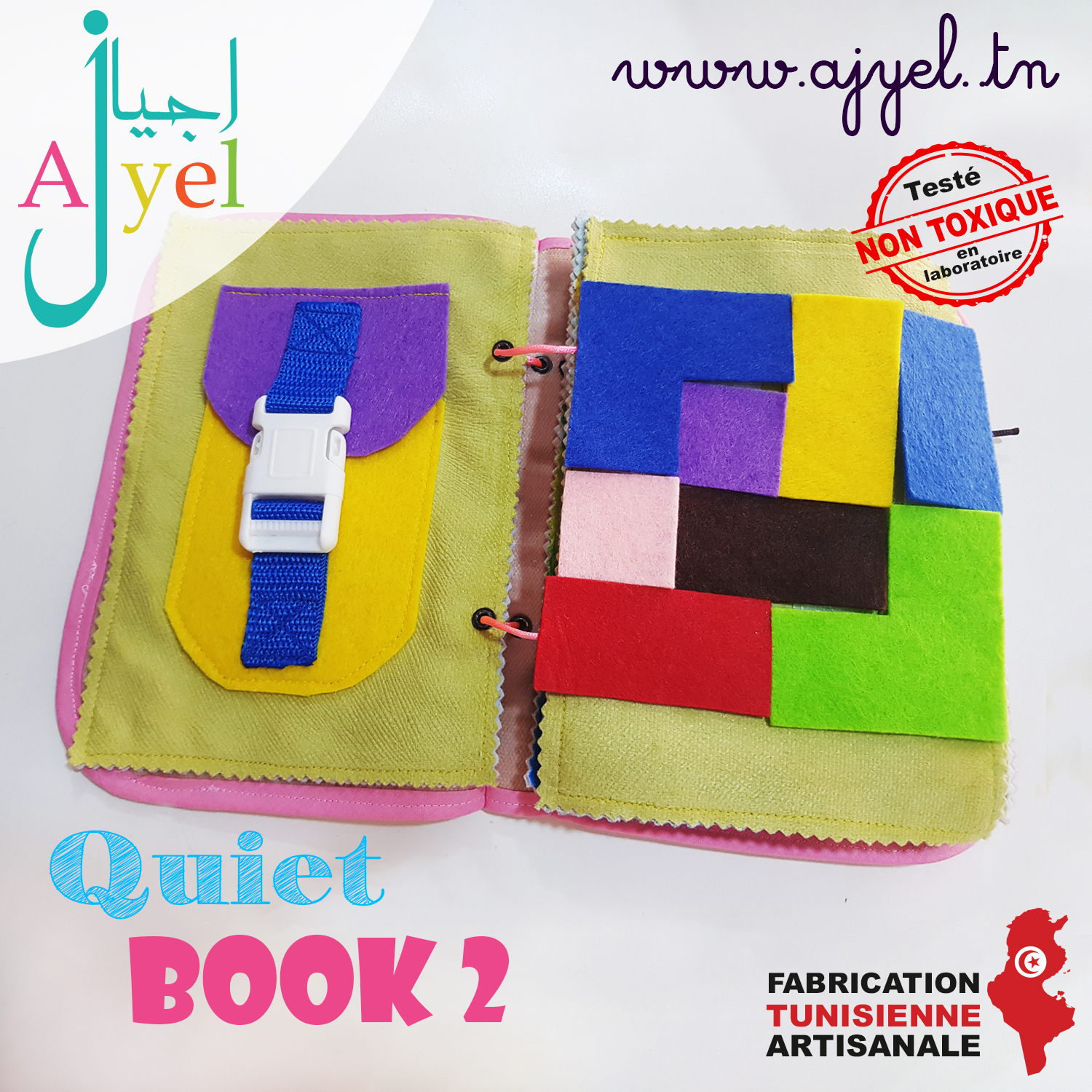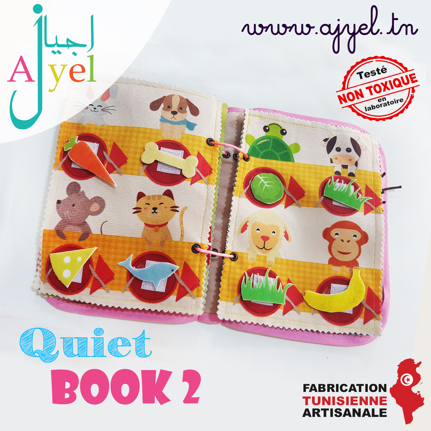 livre en tissu avec de nombreuses activités inspirées de la méthode Montessori à la fois ludique et éducatif pour favoriser l'éveil de votre enfant.