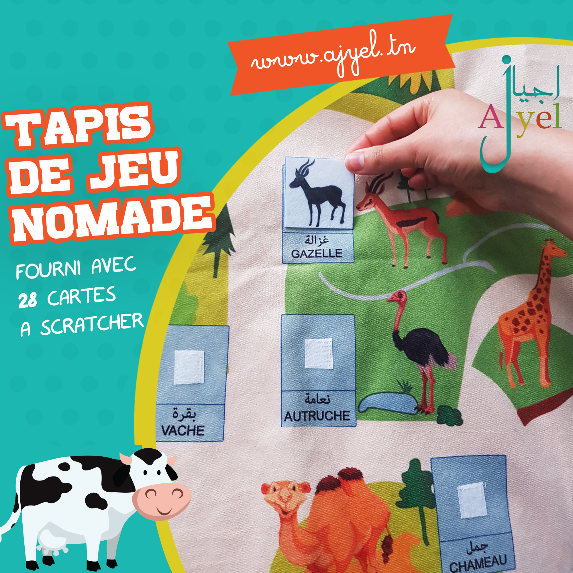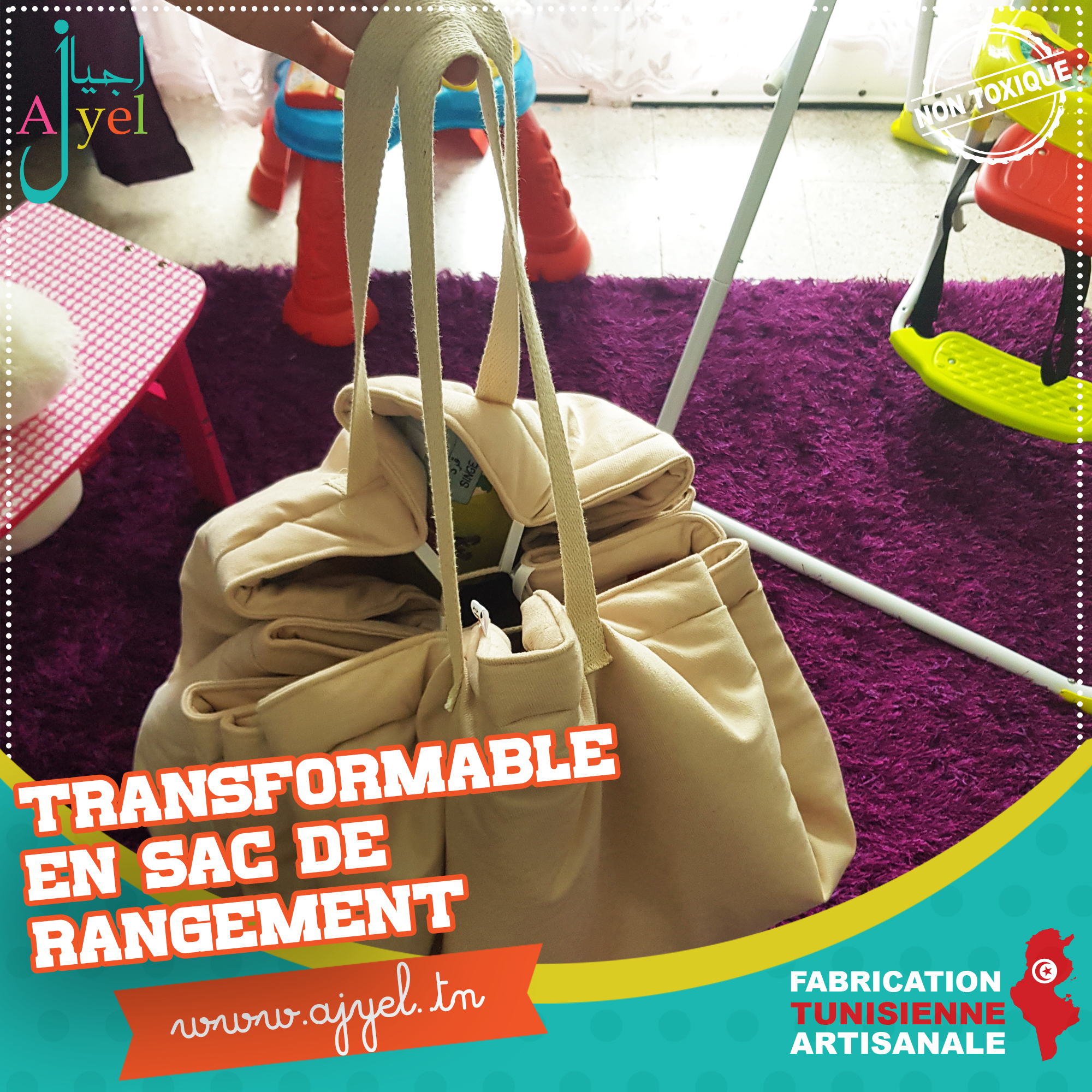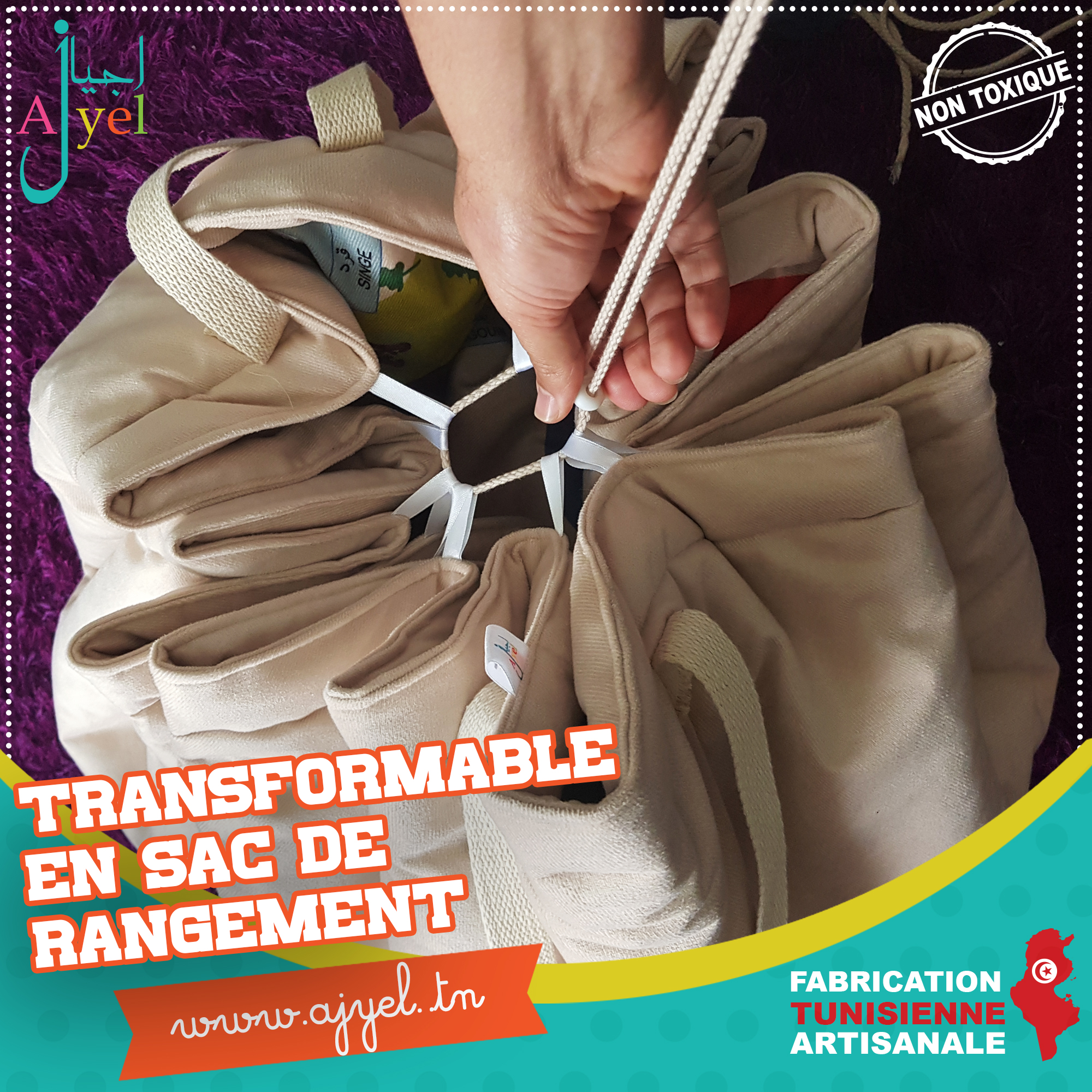 Un beau tapis de jeu nomade transformable en sac de rangement des jouets fourni avec 29 cartes a scratcher